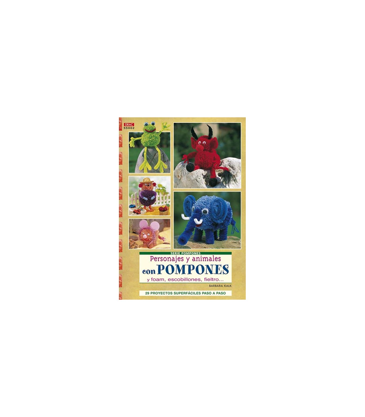 Colección Serie Pompones. 32 páginas con 29 proyectos super fáciles paso a paso. 15 x 21cm. Autora: Barbara Kalk. Con pompones, foam, escobillones o limpia pipas, fieltro, ... Conejo, rana, pollitos, gallo, gato, demonio, osito, duendes, ratita, elefantes, león, Papá Noel, muñecos de nieve, ángel, ...