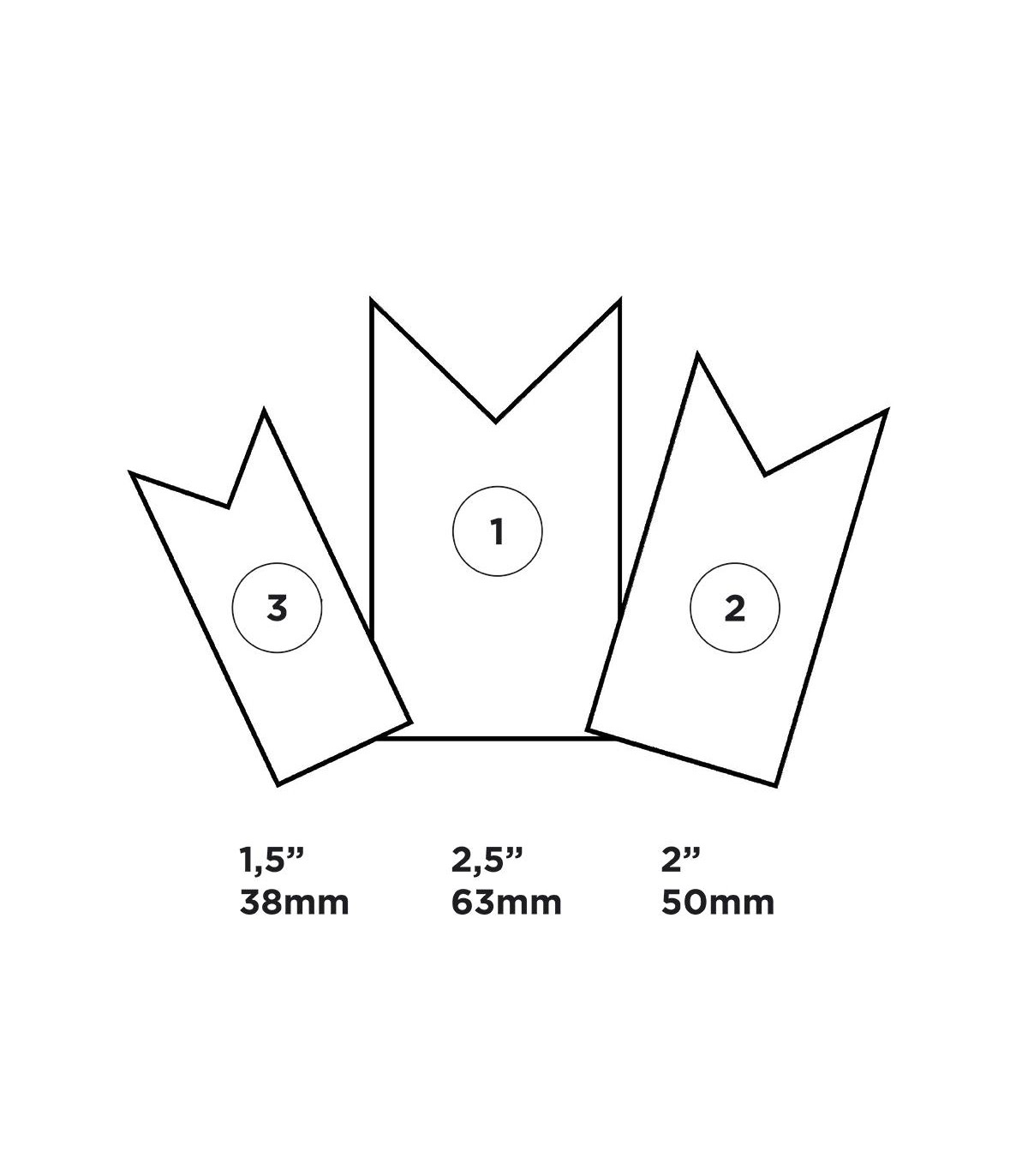 *Medidas (ancho) de las banderolas: 38mm, 50mm y 63mm.