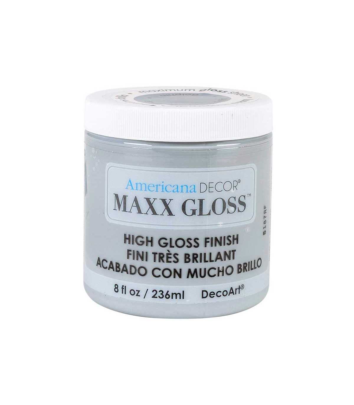 SUPER OFERTA A PRECIO POR DEBAJO DE COSTE! Maxx Gloss permite un acabado similar al lacado en aerosol en una pintura al agua no tóxica que se aplica con pincel o rodillo. Usar sobre madera, metal, vidrio, .... Para exteriores e interiores sin usar barniz encima, no precisa sellador. Es más fluida que otras pinturas, ver vídeo de Decoart para consejos de uso en la ficha del producto. Cubre unos 3,25 metros cuadrados sobre superficies selladas.