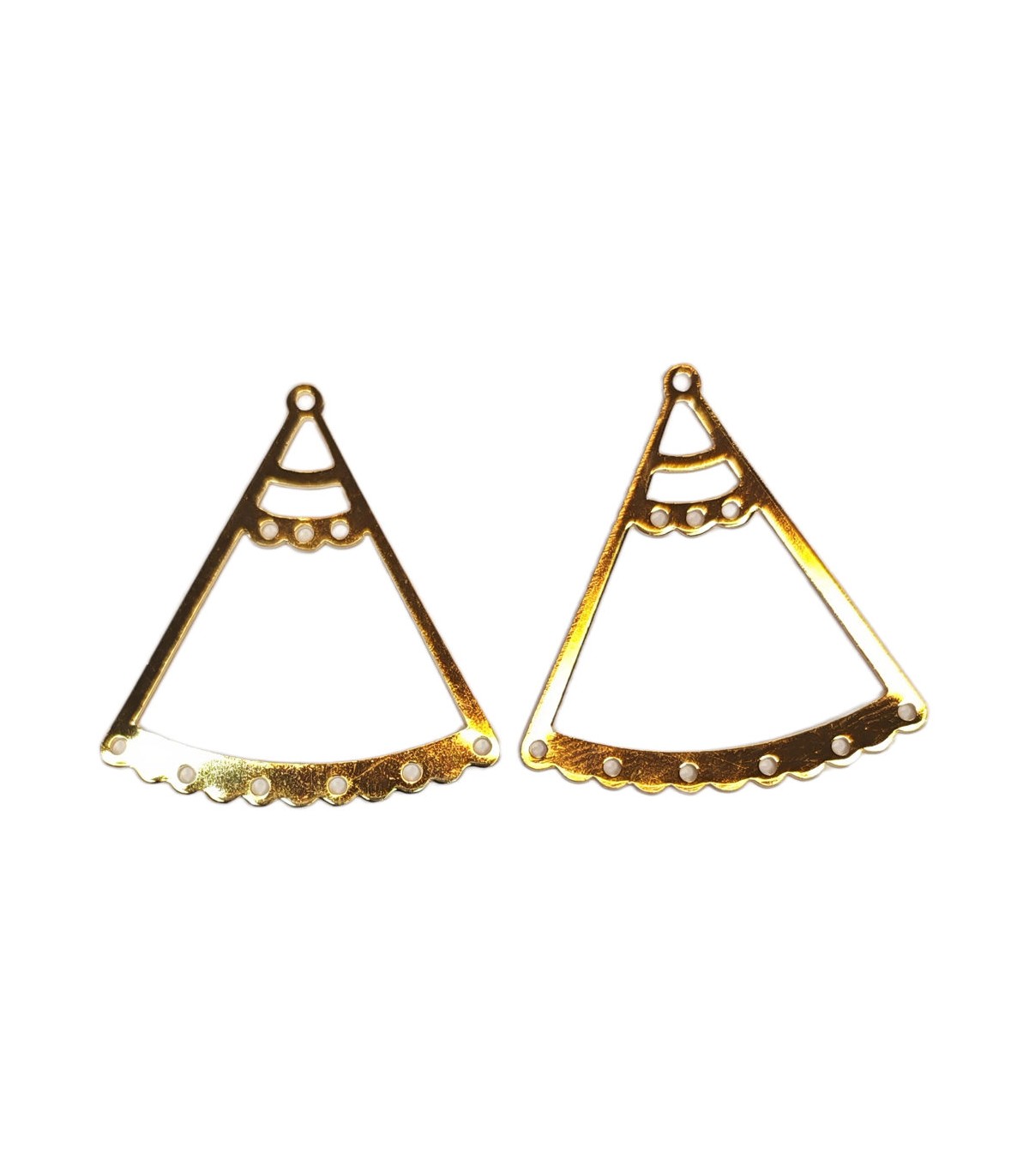 Fabricados en España, latón y baño primera calidad. Baño antialérgico sin nickel. Fornitura ideal para pendientes y colgantes. Se pueden colgar tupis y otras cuentas de los tres agujeros de arriba y de los 6 de abajo. Baños sin niquel, anti alérgicos.